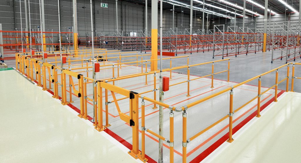 We installed 1,692 lineal metres of Eco-Rail across the facility. That’s a lot of pedestrian handrails, but in a distribution centre of this size, you need clear, physical separation between foot traffic and forklift zones. The Eco-Rail system is modular, so it adapts to the floor layout without needing custom fabrication for every turn and corner.